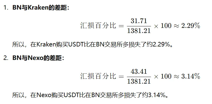 - BN与Kraken的差距: 1381.21 – 1349.5 = 31.71 USDT(BN交易所比Kraken多购买31.71 USDT)