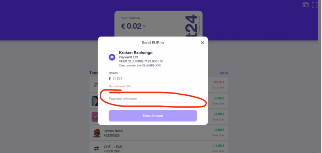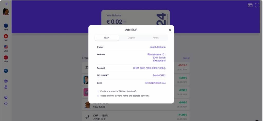 这里就是EUR收款地址,熊猫速汇就是汇款到这里的