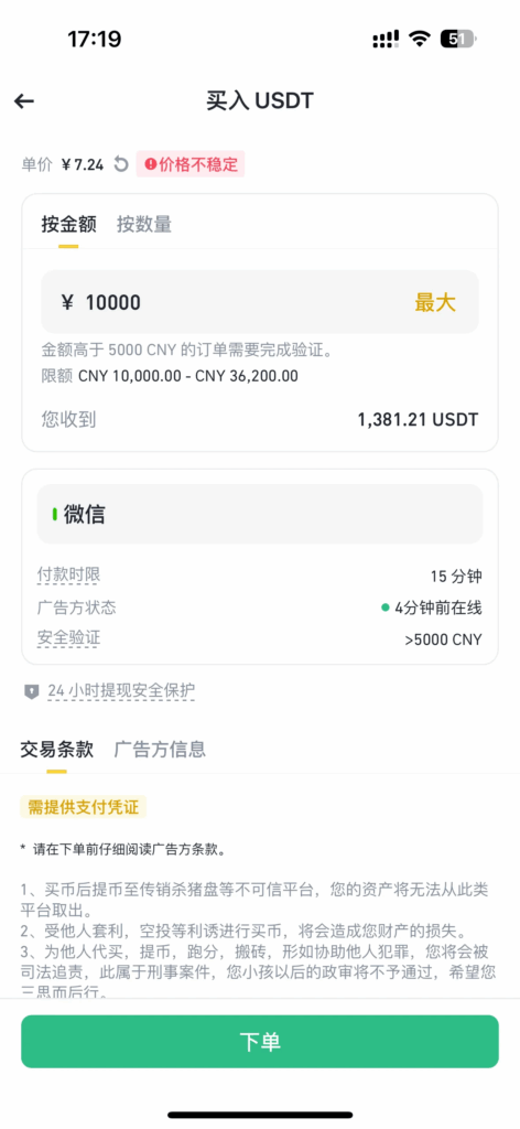 2、没有支付宝/微信转账风控,因为是通过银行卡给国内正规银行转账,所以完全没有转账风控限制,不用像C2C一样找十几个U商一个一个试