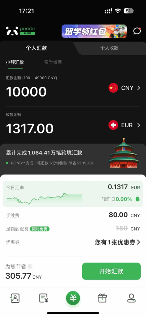 熊猫速汇单笔最大可汇49000 RMB,再也不用蚂蚁搬家了