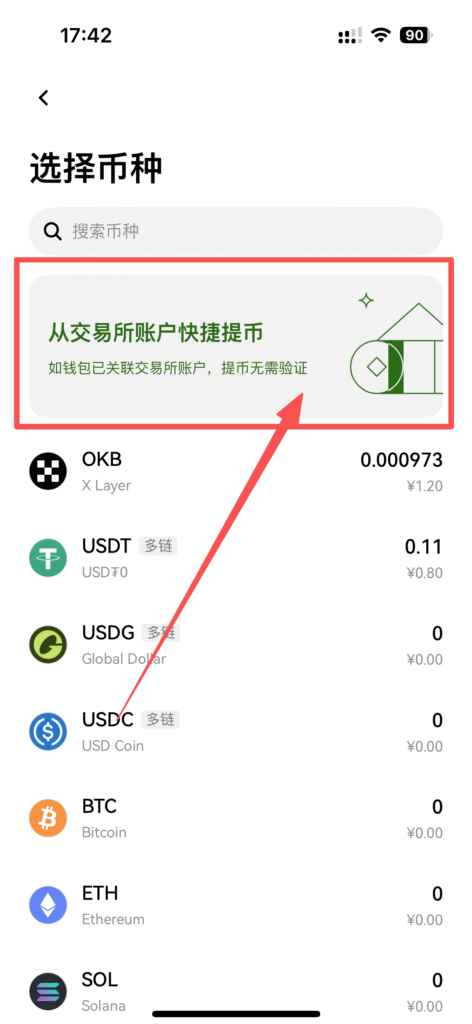 记得购买对应链的币去当手续费,BSC 链买BNB,ETH链买ETH,X- Layer链买OKB,SOL链买SOL,如果你不知道这个币属于哪个链,你点击购买,购买时候会提醒你用哪个币种当手续费,你对应购买提币就行